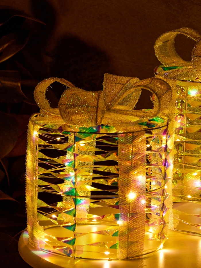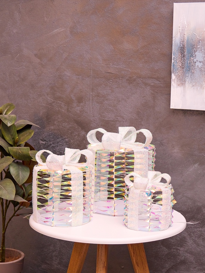Фигура световая "Подарки цилиндр серые", 25х20х15 см, 90 LED, батарейки ААх8 (не в компл.), свечение тёплое белое