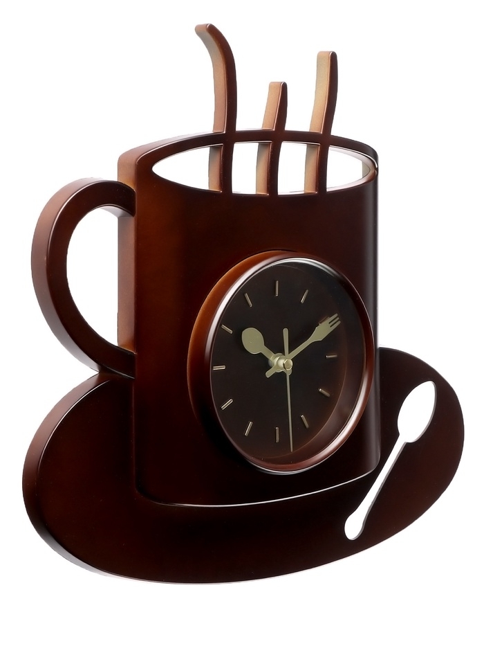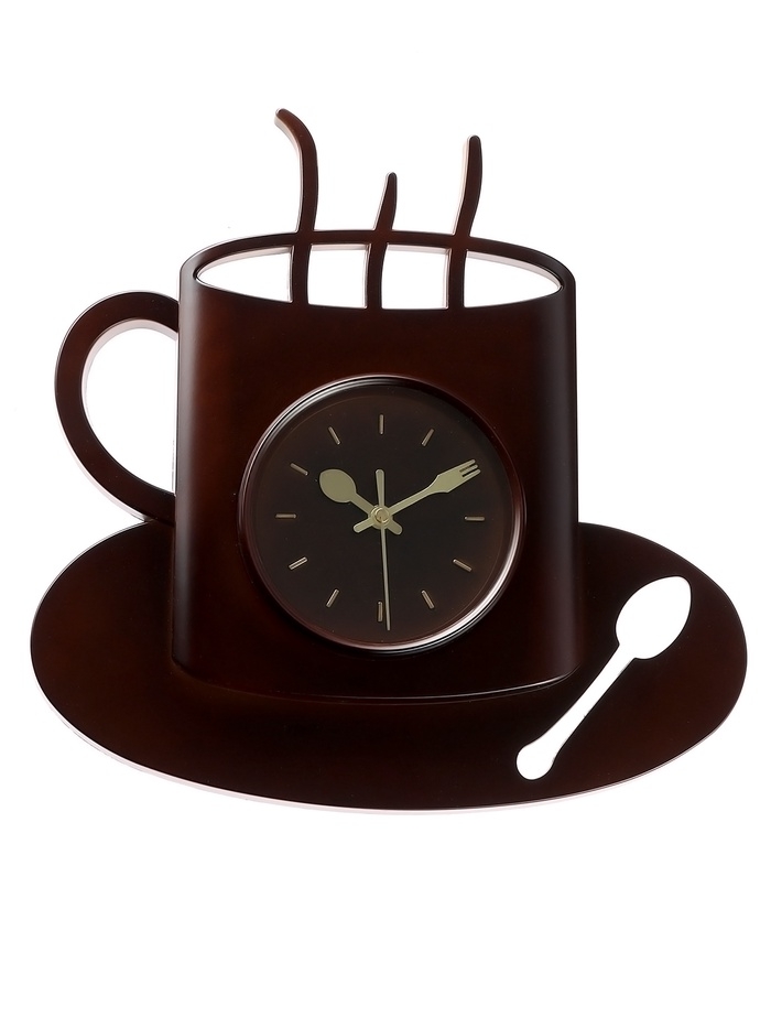 Часы настенные интерьерные для кухни «Чашка», плавный ход, 29×30 см, d-10.5 см, коричневые