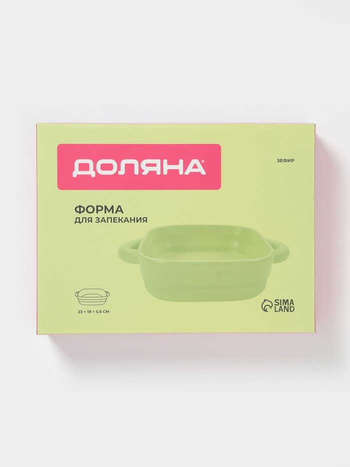 Форма для запекания Доляна «Зефир», 900 мл, 18×18 см, квадратная, керамика, зелёная