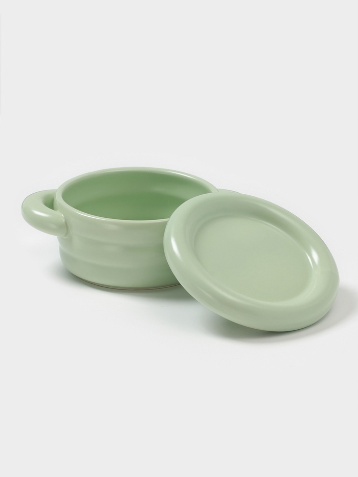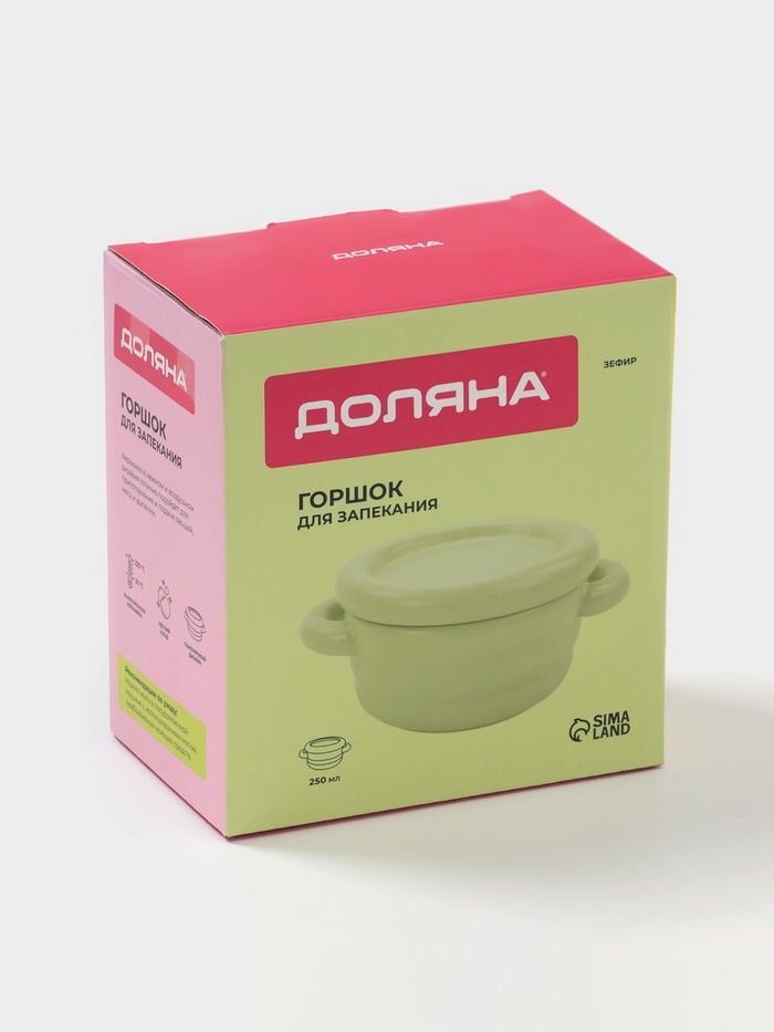 Горшочек для запекания Доляна «Зефир», 250 мл, 15×10,5×6,3 см, с ручками, с крышкой, керамика, зелёный