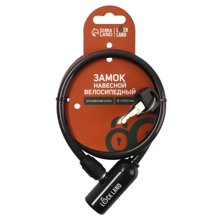 Замок навесной велосипедный LOCKLAND, 8х650 мм, английский ключ