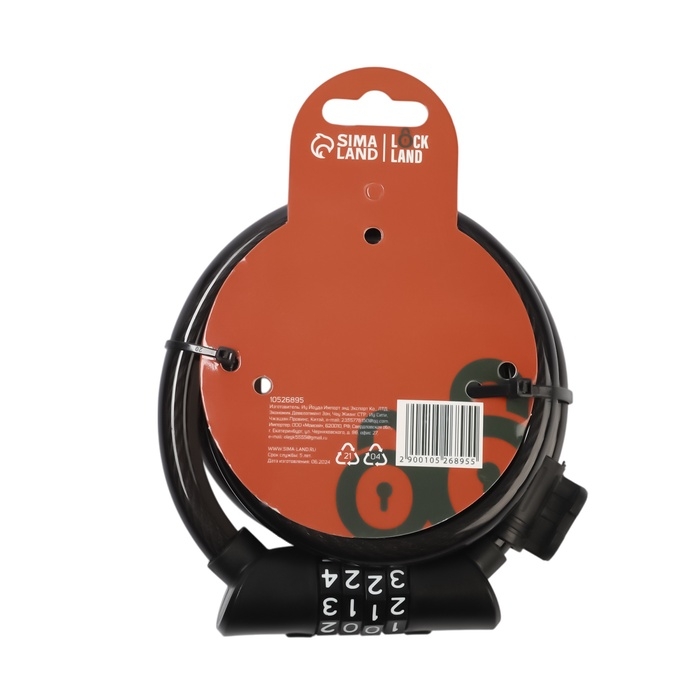 Замок навесной велосипедный LOCKLAND, 12х1200 мм, кодовый замок, с держателем на раме