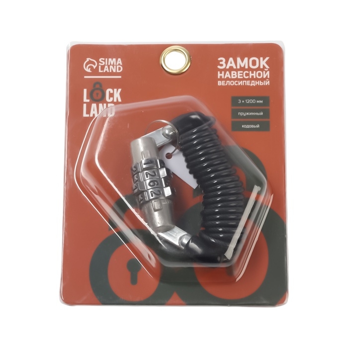 Замок навесной велосипедный LOCKLAND, пружинный, 3х1200 мм, кодовый замок