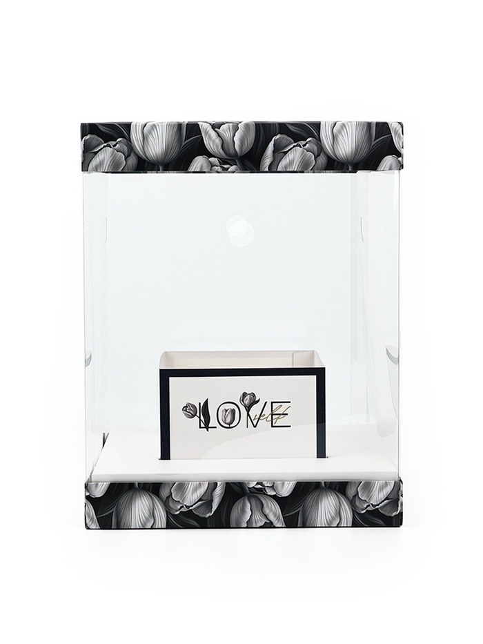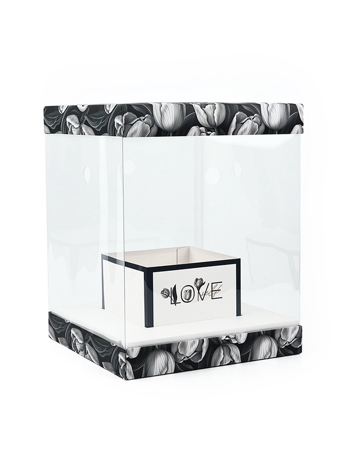 Коробка для цветов с вазой и PVC окнами складная «Чёрно-белая эстетика», 23 х 30 х 23 см