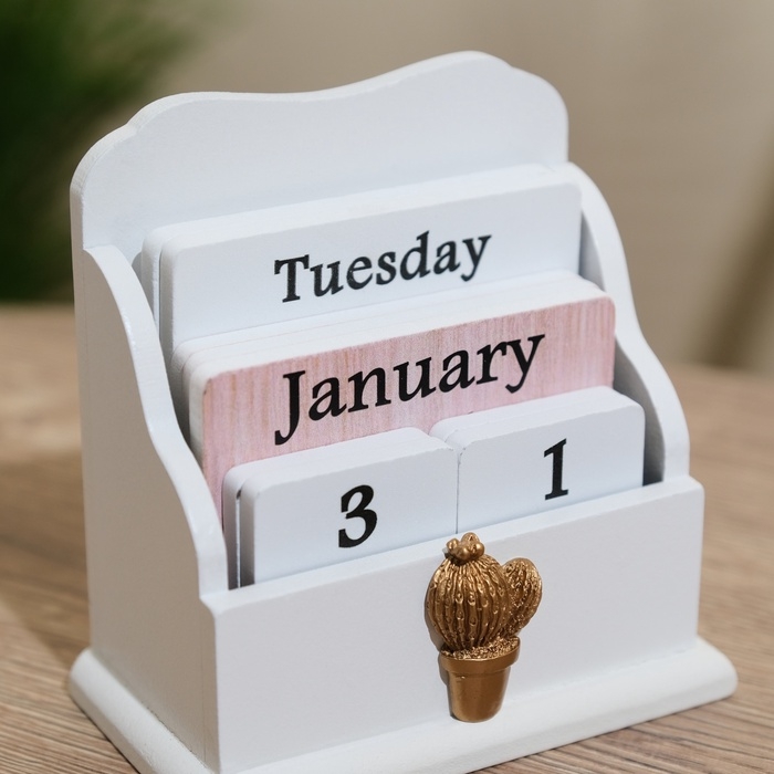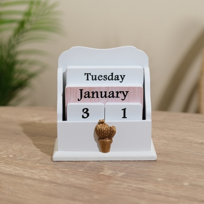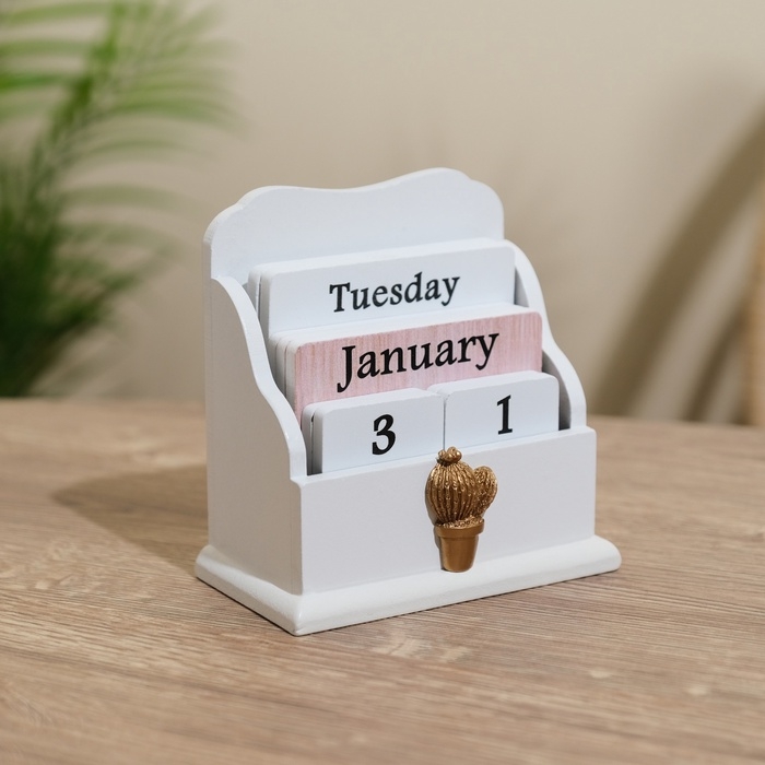 Сувенир вечный календарь, дерево, 11.5х6.5х12 см, цв. белый