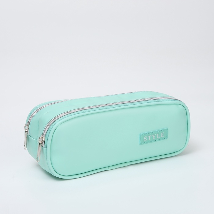 Косметичка-пенал, 2 отдела на молниях, цвет зелёный