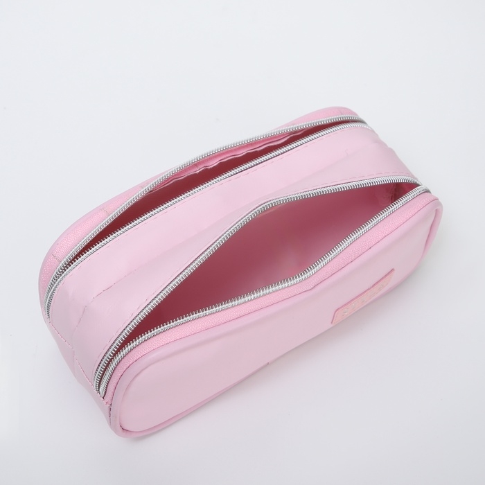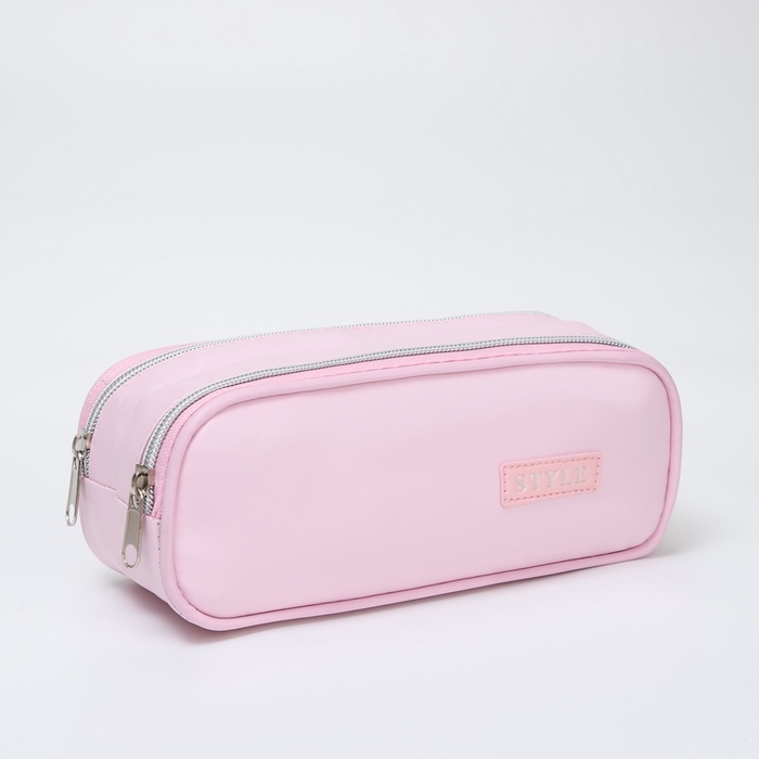 Косметичка-пенал, 2 отдела на молниях, цвет светло-розовый