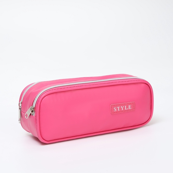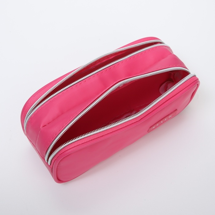 Косметичка-пенал, 2 отдела на молниях, цвет розовый