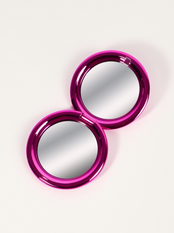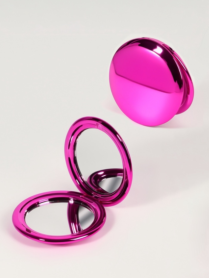 Зеркало склад круг (2) с/увел d6.5см МЕТАЛЛИК пластик розовый пакет QF