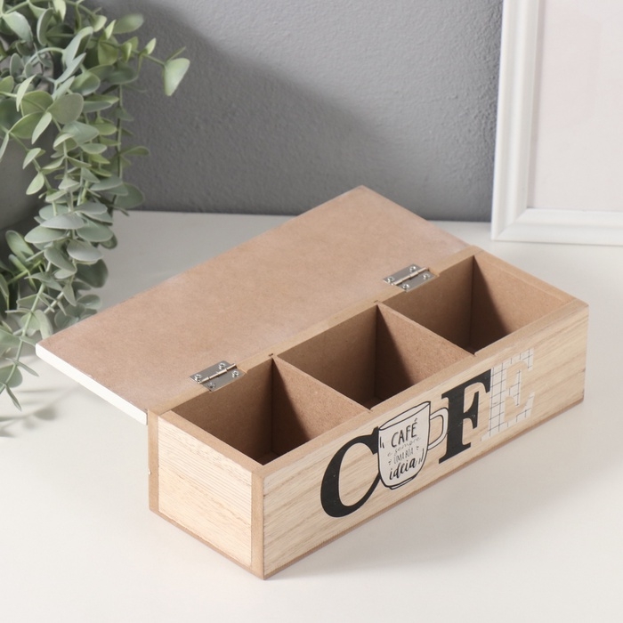 Шкатулка дерево 3 деления "Кофе из Испании" 8,5х23,7х7 см