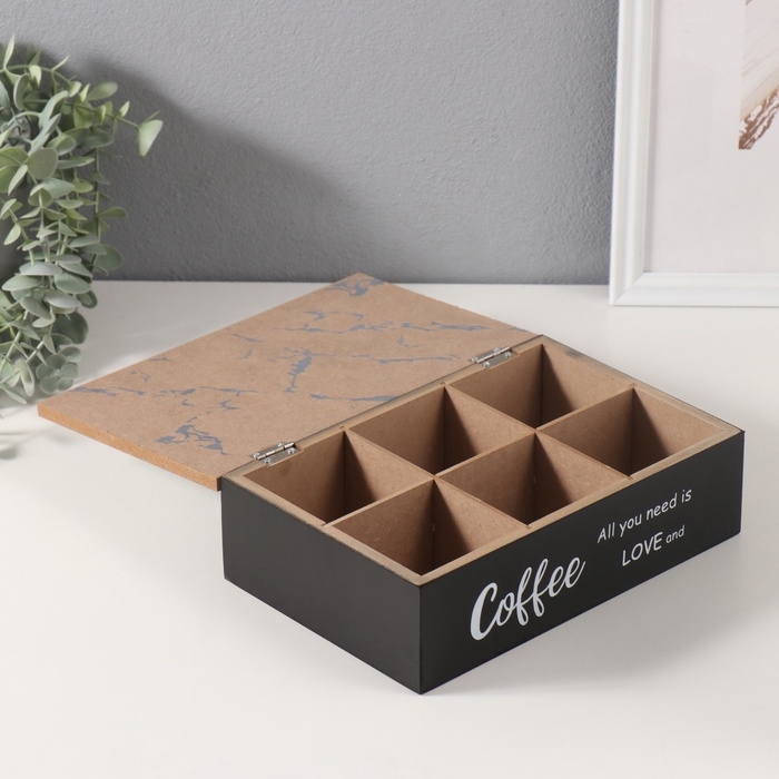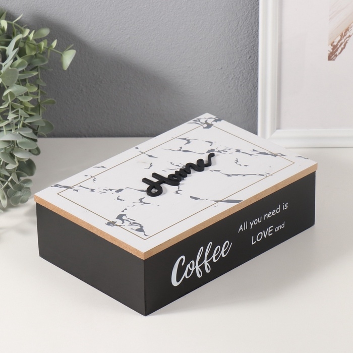 Шкатулка дерево 6 делений "Любовь и кофе" 23х15х7 см
