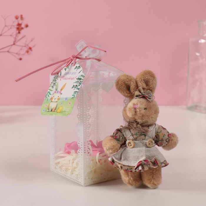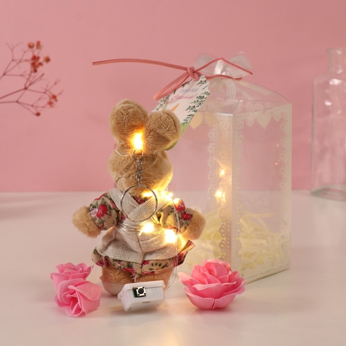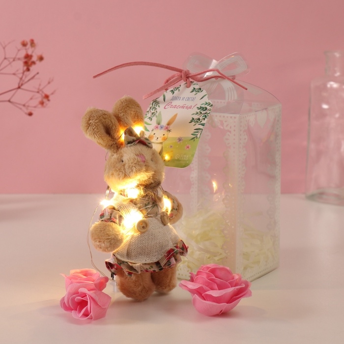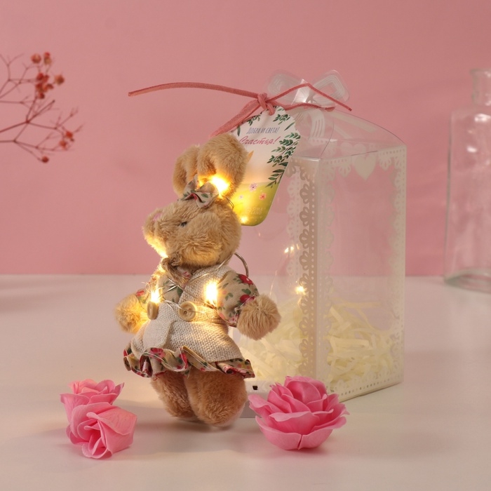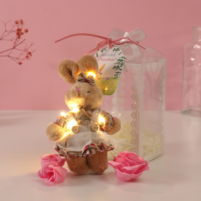 Набор подарочный "Зайка в платье" мыльные розовые розы 5 шт, роса 7х7х12 см