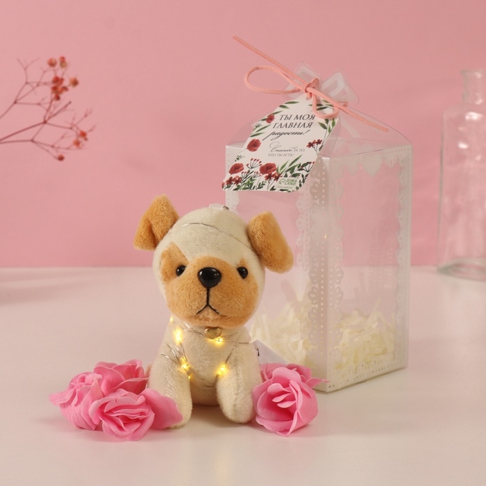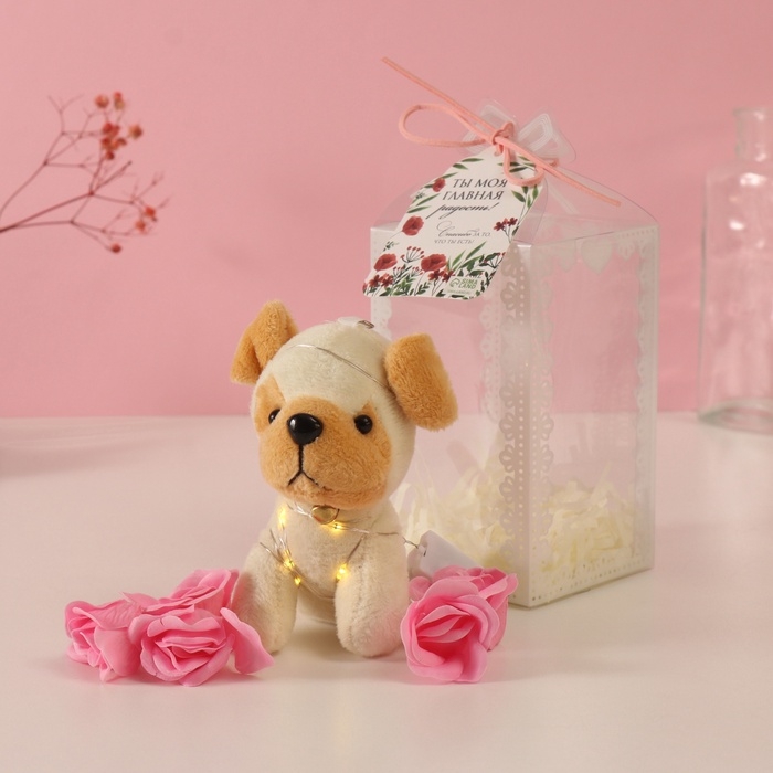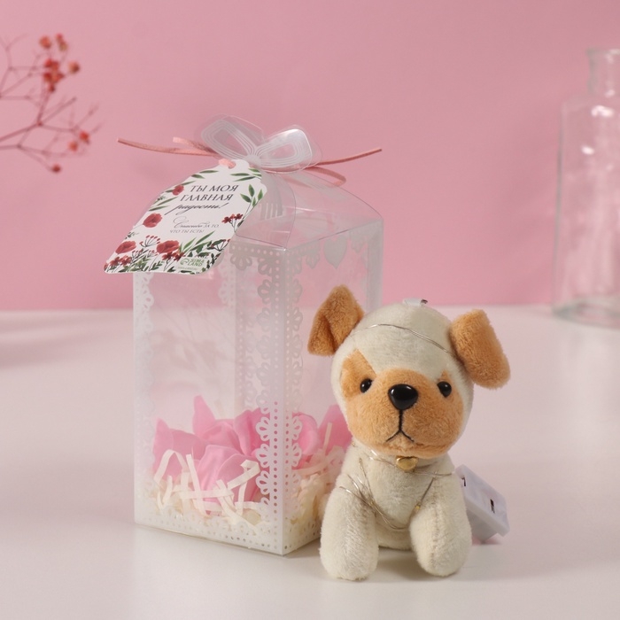 Набор подарочный "Пёсик белый" мыльные розовые розы 5 шт, роса 7х7х12 см