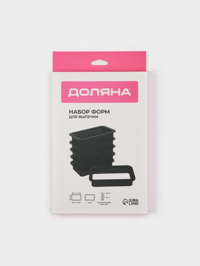 Формы для выпечки перфорированные Доляна «Прямоугольник», набор 6 шт, пластик, 10×5,5×2 см, чёрные