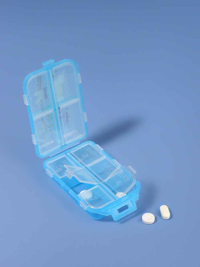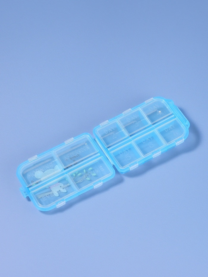 Таблетница, 9,5 × 6 × 3 см, 10 секций, цвет голубой