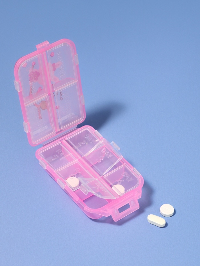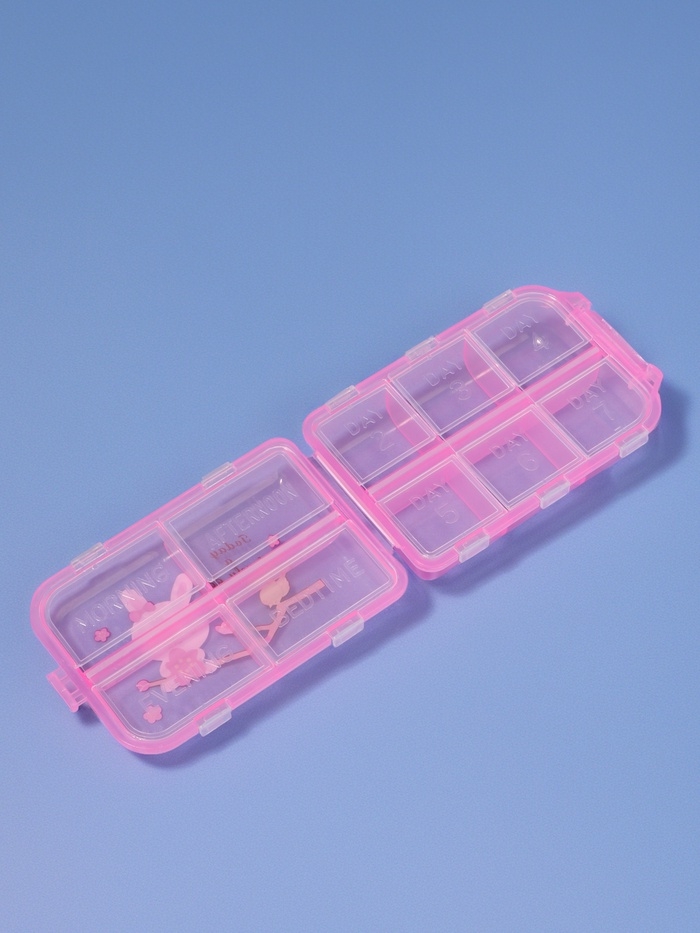 Таблетница, 9,5 × 6 × 3 см, 10 секций, цвет розовый