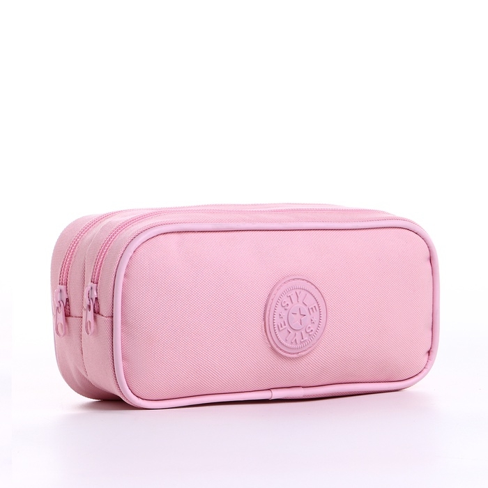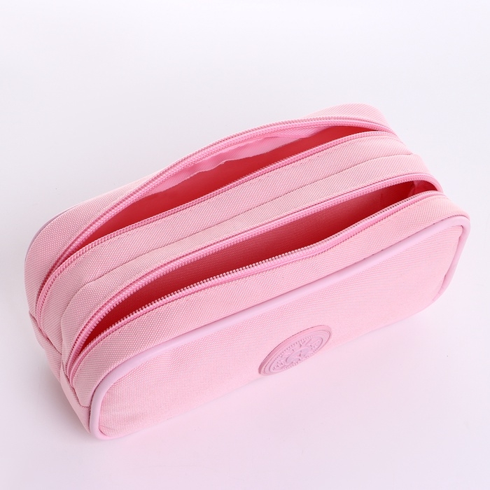 Косметичка-пенал, 2 отдела на молниях, цвет розовый