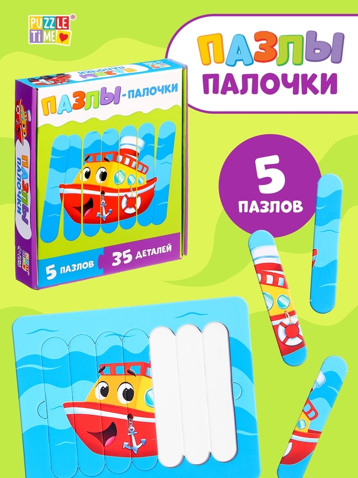 Пазлы палочки «Весёлый транспорт», 5 пазлов, 35 деталей