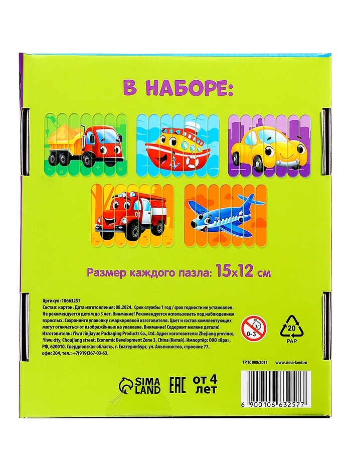 Сборка пазлов помогает ребёнку развивать внимательность, логическое мышление и мелкую моторику. В процессе ребёнок изучает формы, цвета и знакомится с изображениями средств передвижения, что делает игру не только увлекательной, но и познавательной.