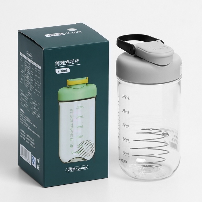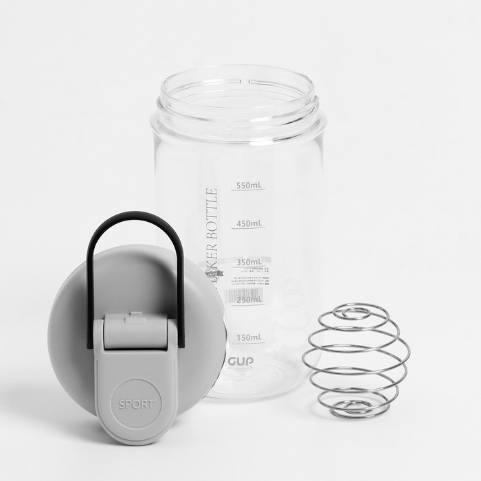Шейкер спортивный для коктейлей и воды 550 мл, с мерной шкалой, тритан, 7.5 х 18 см