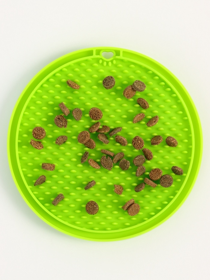 Что намазать коврик: Консервированный корм, паштет, соус, подливка, плавленый сыр, йогурт, арахисовое масло, мороженное для животных, банан, пюре из овощей для животных, раздавленные и смоченные водой печенья.