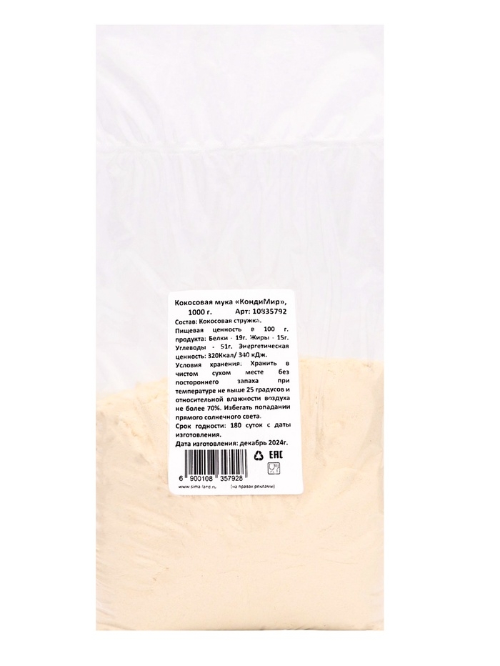 В упаковке 1000 г вы получите достаточно кокосовой муки для создания множества вкусных и здоровых блюд, которые порадуют вас и ваших близких. Попробуйте добавить кокосовую муку в свои любимые рецепты и откройте для себя новые кулинарные горизонты!