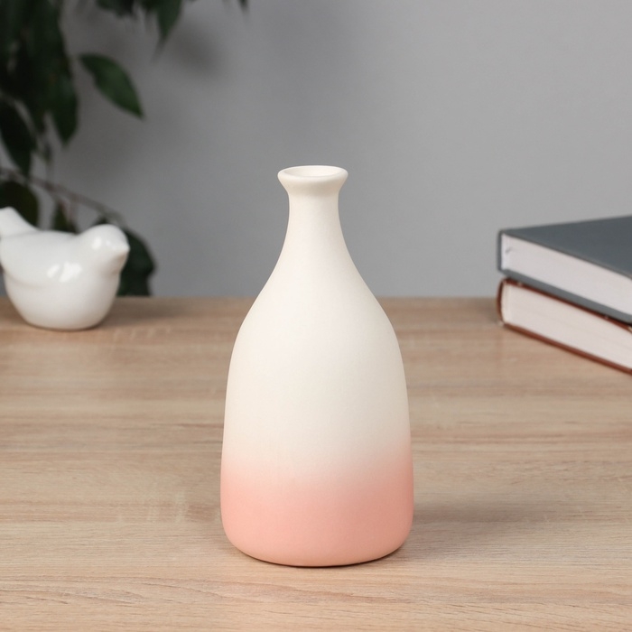 Ваза керамика настольная "Хайди" бутыль, 15,5х7,5 см, бело-розовый