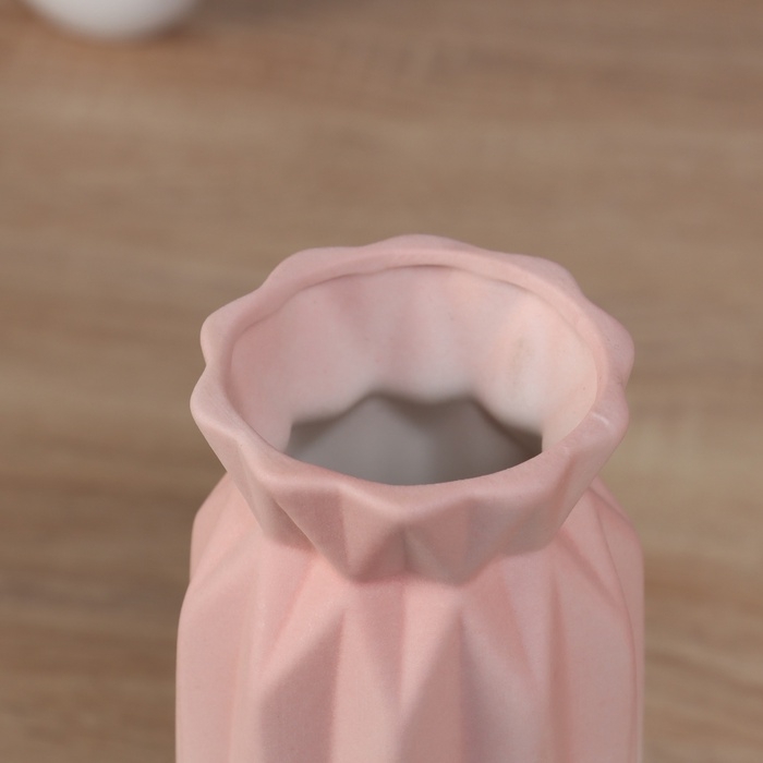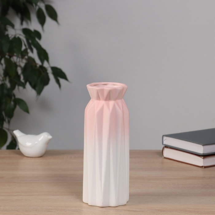 Ваза керамика настольная "Хайди" грани галант, 21х8 см, бело-розовый