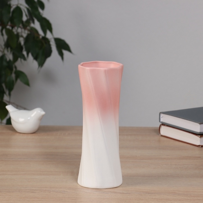 Ваза керамика настольная "Хайди" линии, 20,5х7,5 см, бело-розовый