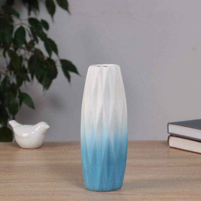 Ваза керамика настольная "Хайди" грани стиль, 20,5х6,5 см, бело-голубой