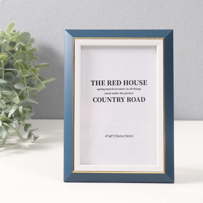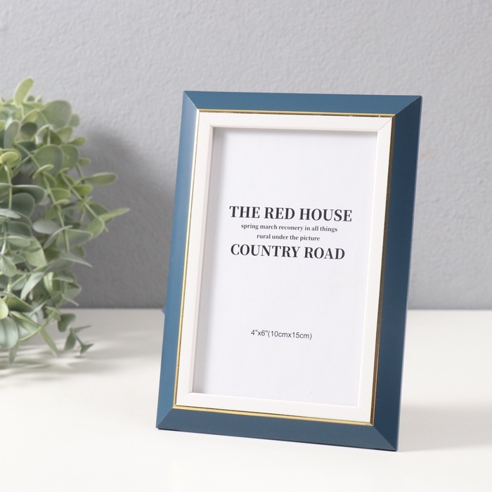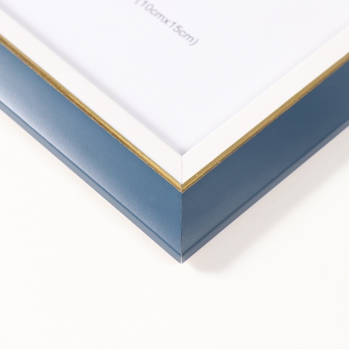Фоторамка пластик 10х15 см "Сине-белая" с золотой полосой 1,5х13,2х18 см