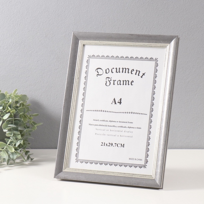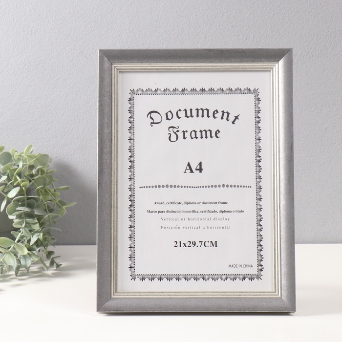 Фоторамка пластик формат А4 см "Габриэль" серая с серебряной полосой 2,2х25х33,7 см