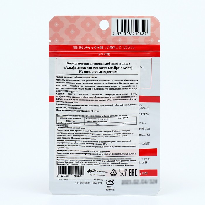 Область применения: для реализации населению в качестве биологически активной добавки к пище - источника альфа-липоевой кислоты, для ускорения расщепления жиров и энергообмена в клетках, повешения тонуса мышц и выносливости, стимуляции потери веса при физических нагрузках.