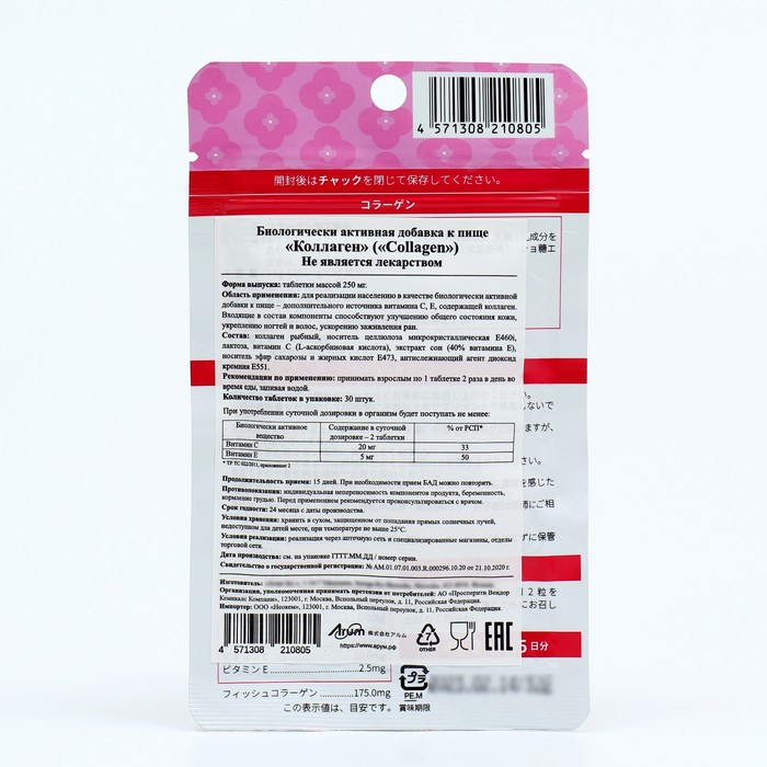 Область применения: для реализации населению в качестве биологически активной добавки к пище - дополнительного источника витамина C, E, содержащей коллаген, для улучшения общего состояния кожи, укрепления волос и ногтей, ускорения заживления ран.