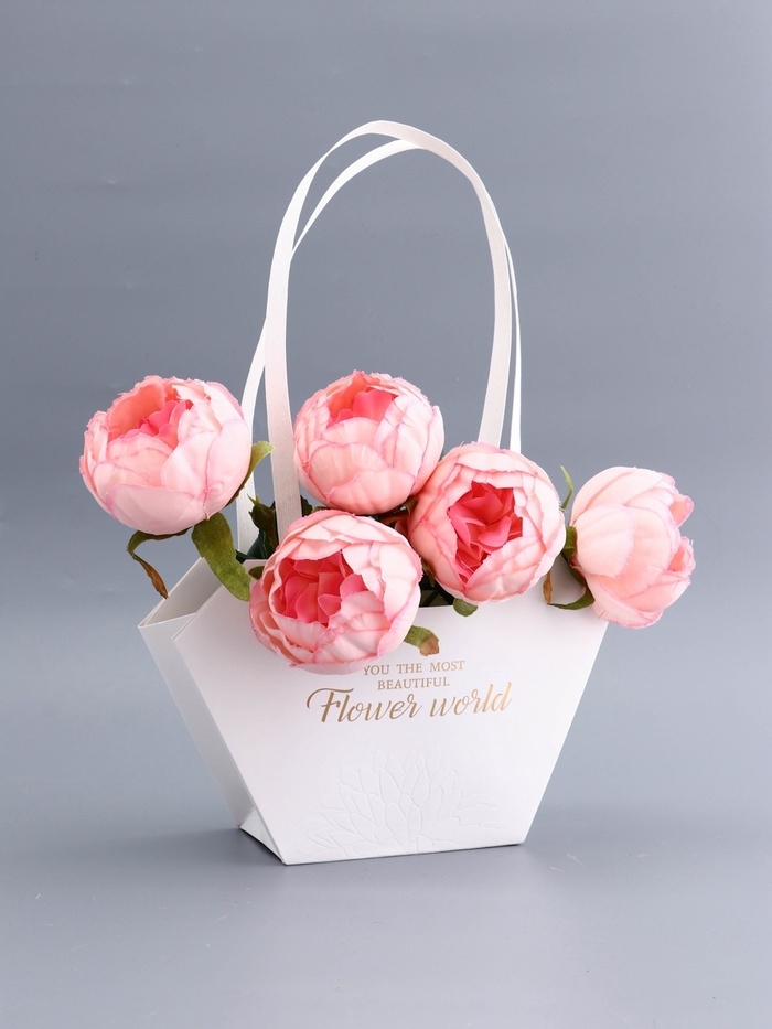 Сумка для цветов тиснение белая, "Самой прекрасной", влагостойкая, 23х15х9 см