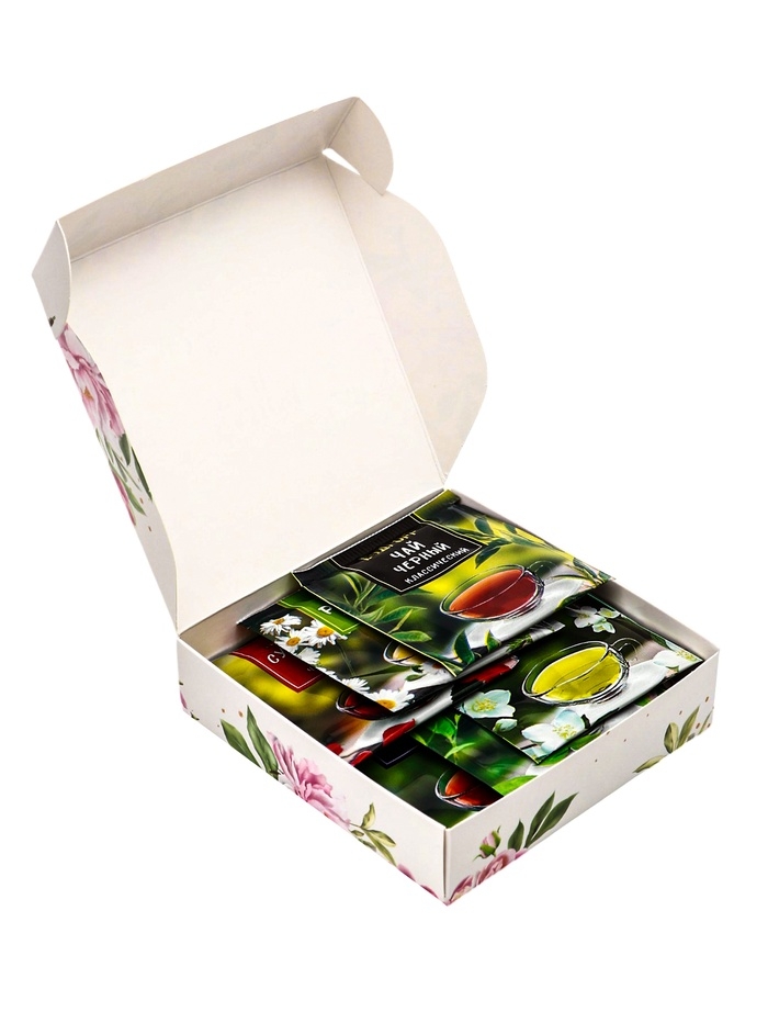 Эта коллекция включает в себя тщательно отобранные сорта чая, такие как легкий белый, ароматный зеленый и успокаивающий травяной. Каждый пакетик наполнен качественными чайными листьями и натуральными добавками, которые создают гармоничные и сбалансированные вкусовые сочетания, идеально подходящие для расслабляющего чаепития.