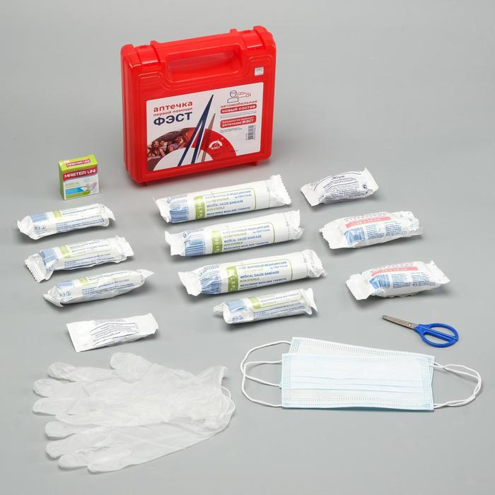 Автомобильная аптечка первой помощи "ФЭСТ" состав 2024, по приказу №1080н, красная