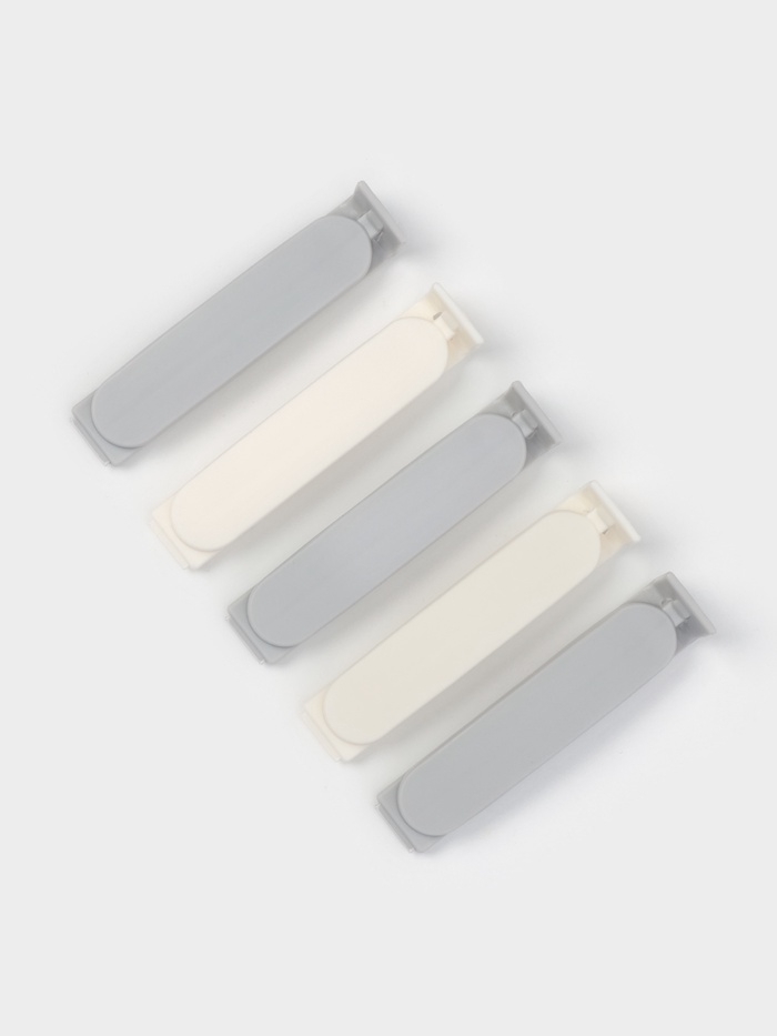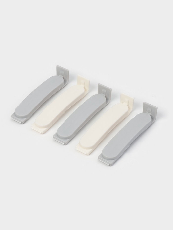Набор зажимов для пакетов 5 шт, 7х7,5х1,5 см, цвет белый/серый