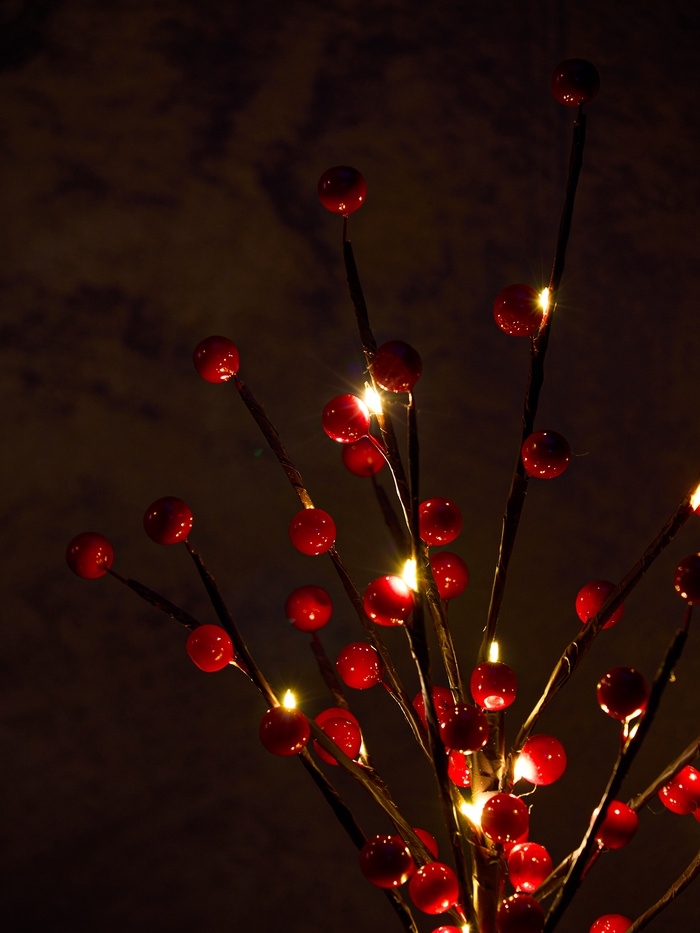 Светодиодный куст «Рябина» 45 см, 24 LED, постоянное свечение, от батареек ААх3 (не в комплекте), свечение тёплое белое