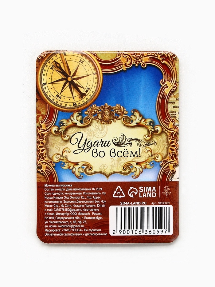 Монета сувенирная на Выпускной "Счастливая монета 2025", диам 2,5 см