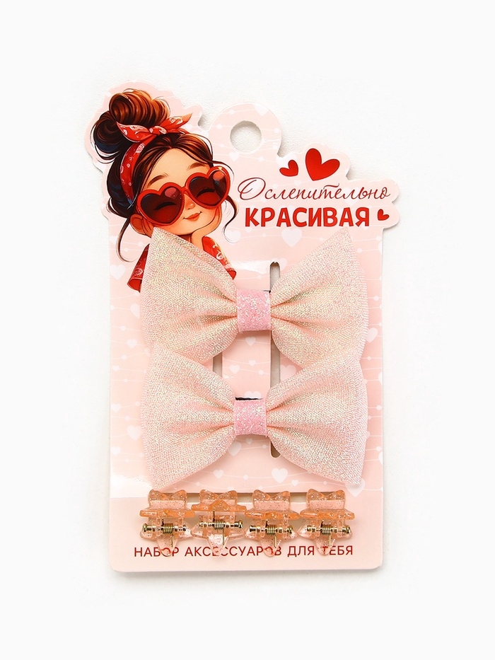 Бант для волос 2 шт, крабики «Ослепительно Красивая», 8 х 12,5 см
