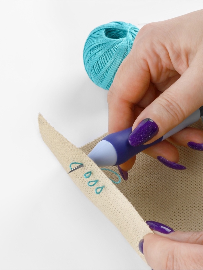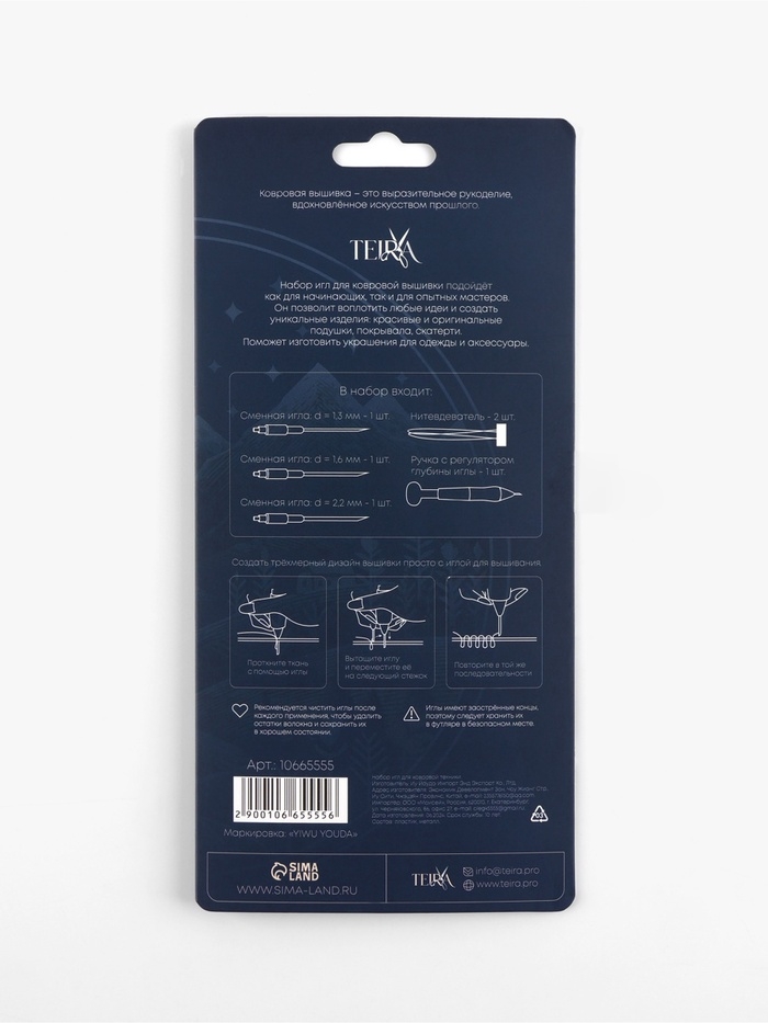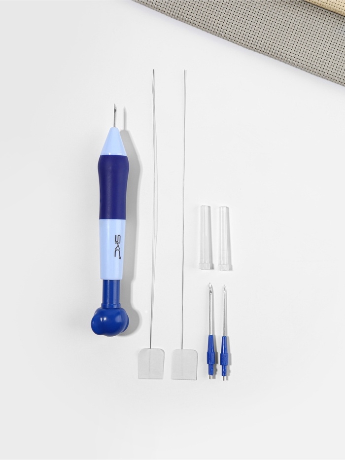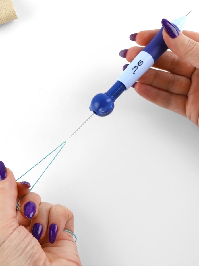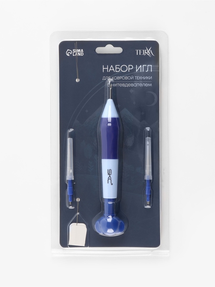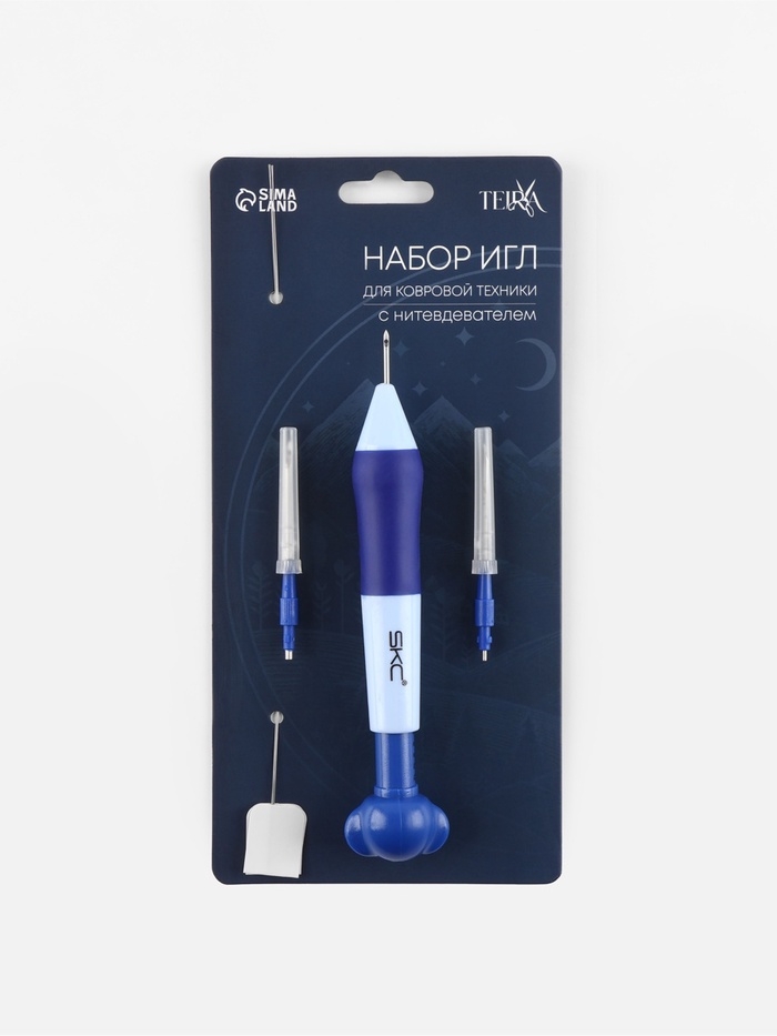 Игла для выш-я по ковровой технике d1,3/1,6/2,2мм SKC с нитев-м блистер голубой/синий TR
