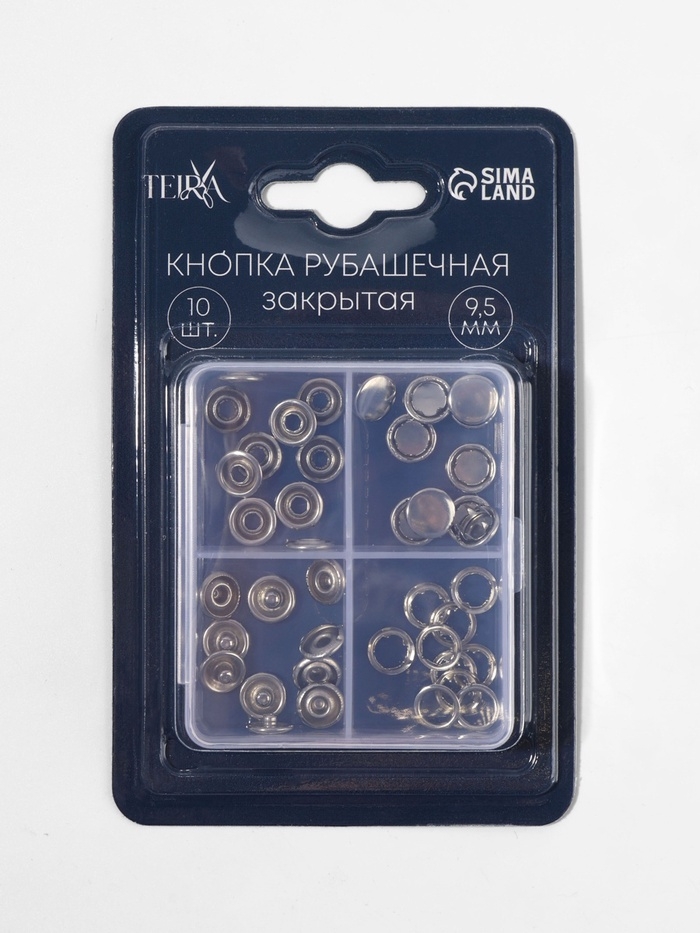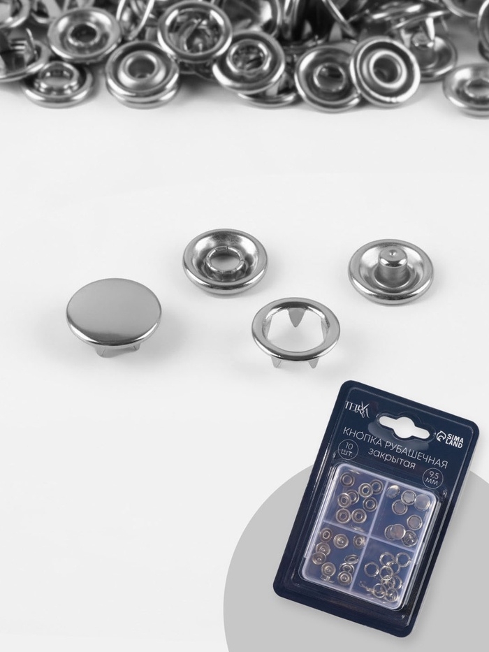 Кнопки рубаш закр d9,5мм (наб 10шт цена за наб) нерж сталь серебряный блистер TR