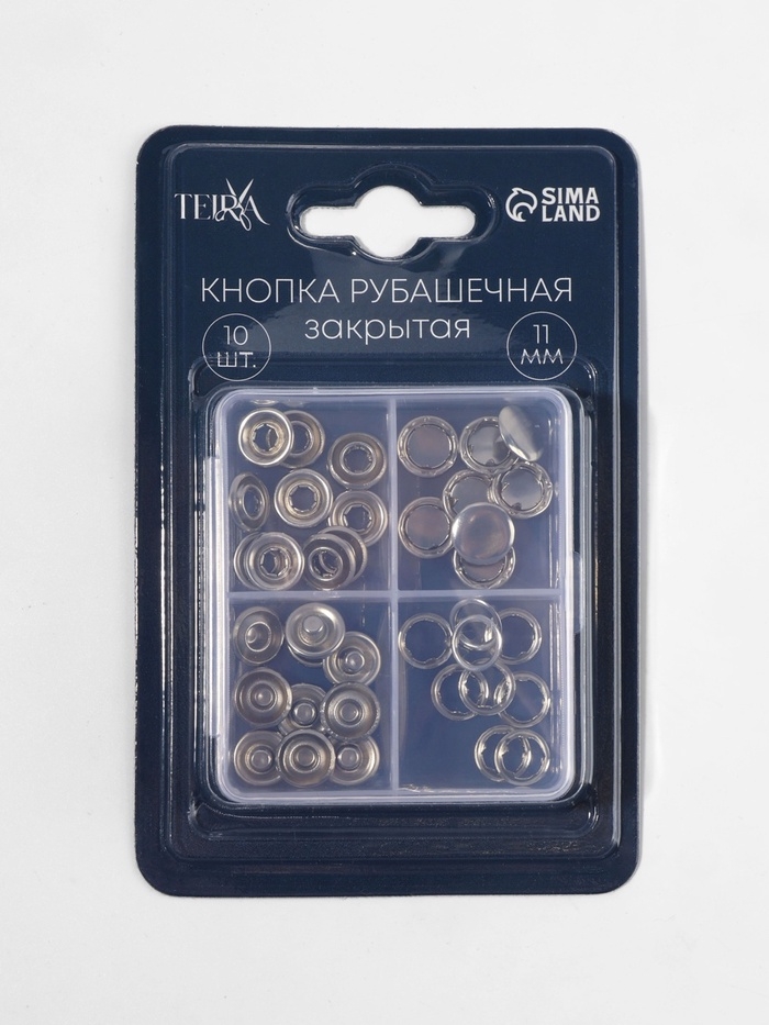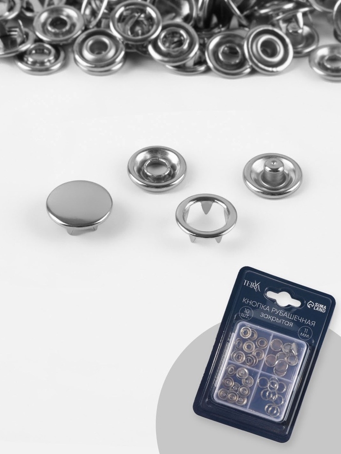 Кнопки рубаш закр d11мм (наб 10шт цена за наб) нерж сталь серебряный блистер TR
