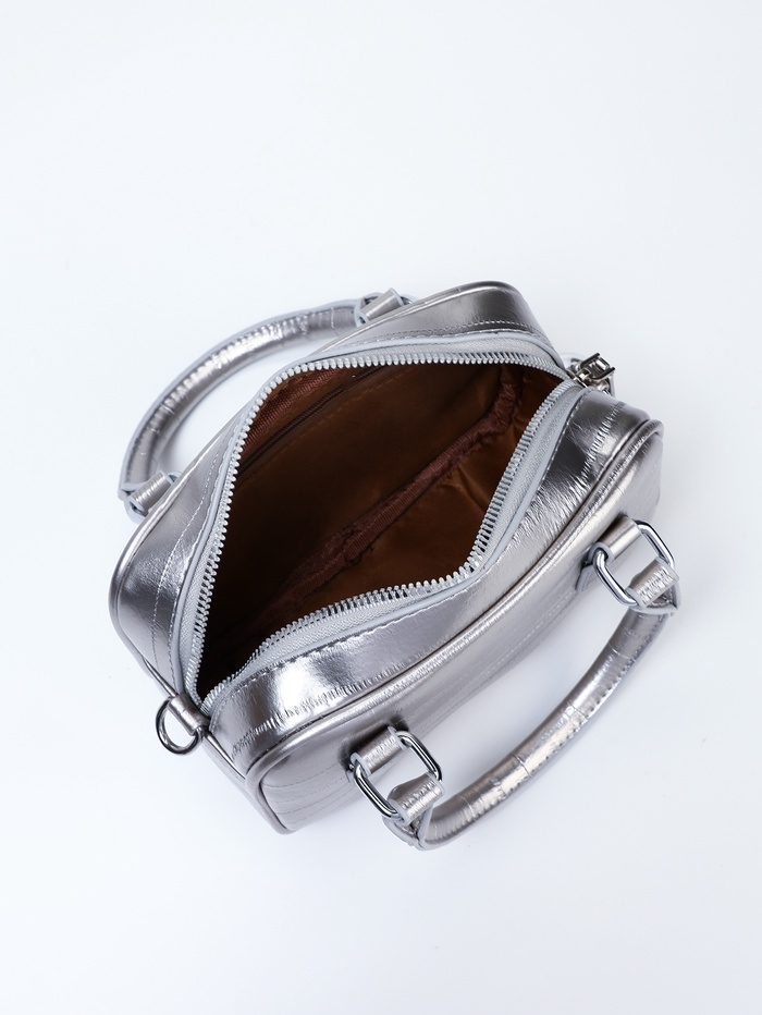 Сумка женская, 20*9*12, отд на молнии, длин ремень, серебро