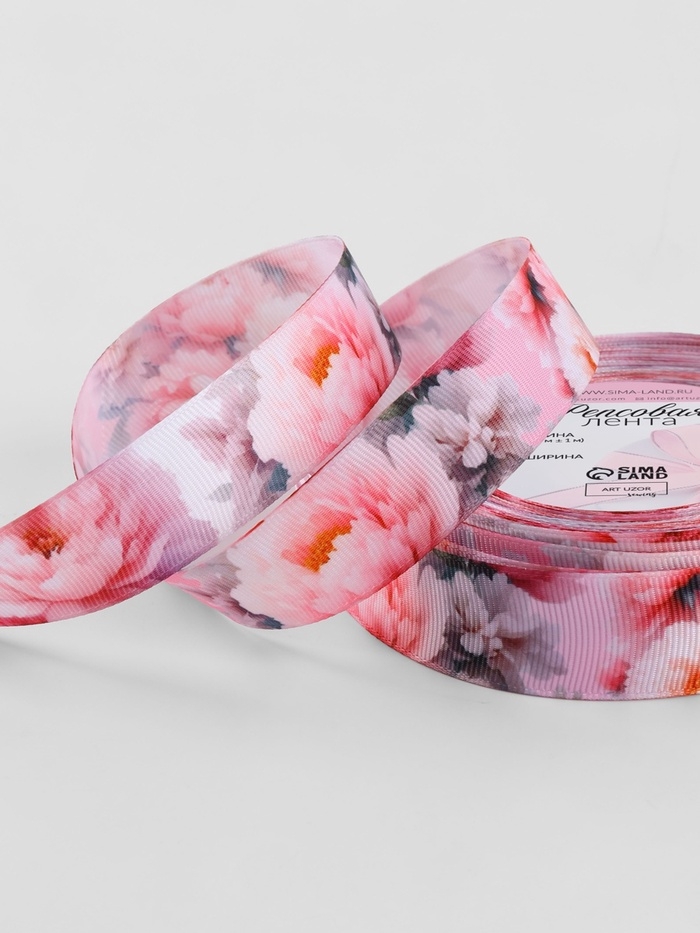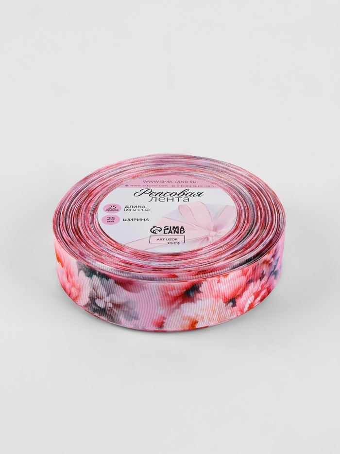 Лента репсовая 25мм*25±1ярд(23м±1м) розовые пионы АУ