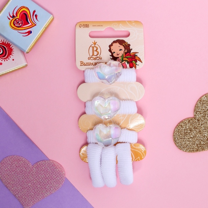 Резинка для волос "Нежность" (набор 6 шт) сердце, 2 см, белый