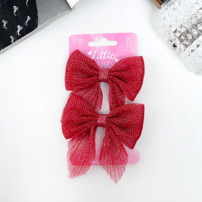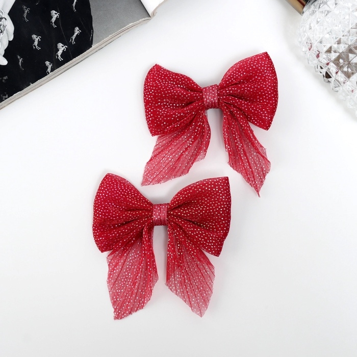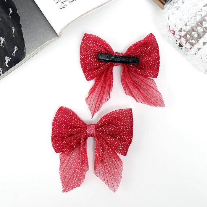 Зажим для волос "Марта" (набор 2 шт) блеск, 7,5 см, красный