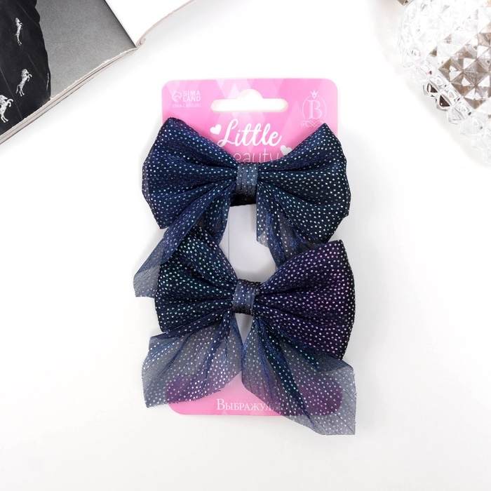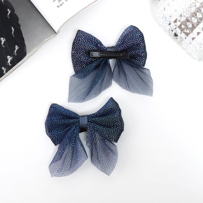 Зажим для волос "Марта" (набор 2 шт) блеск, 7,5 см, синий