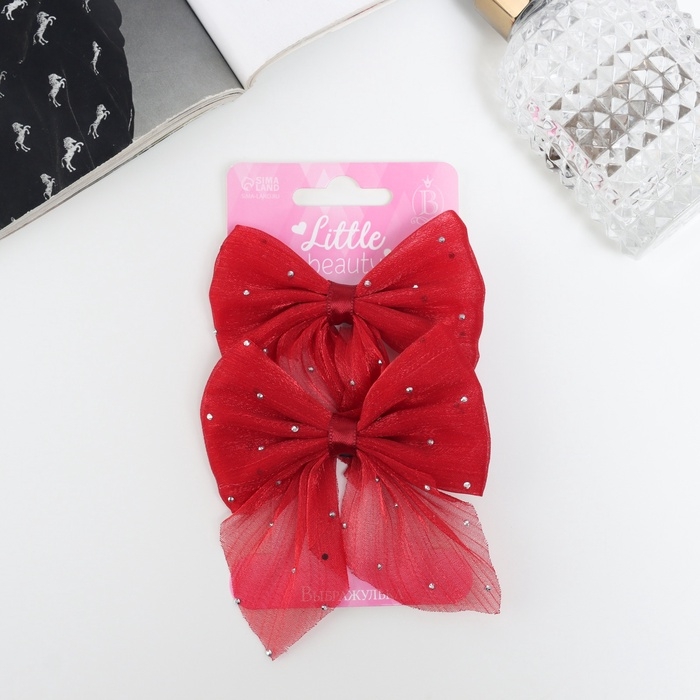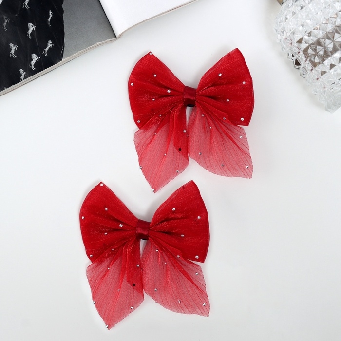 Зажим для волос "Марта" (набор 2 шт) переливы, 7,5 см, красный